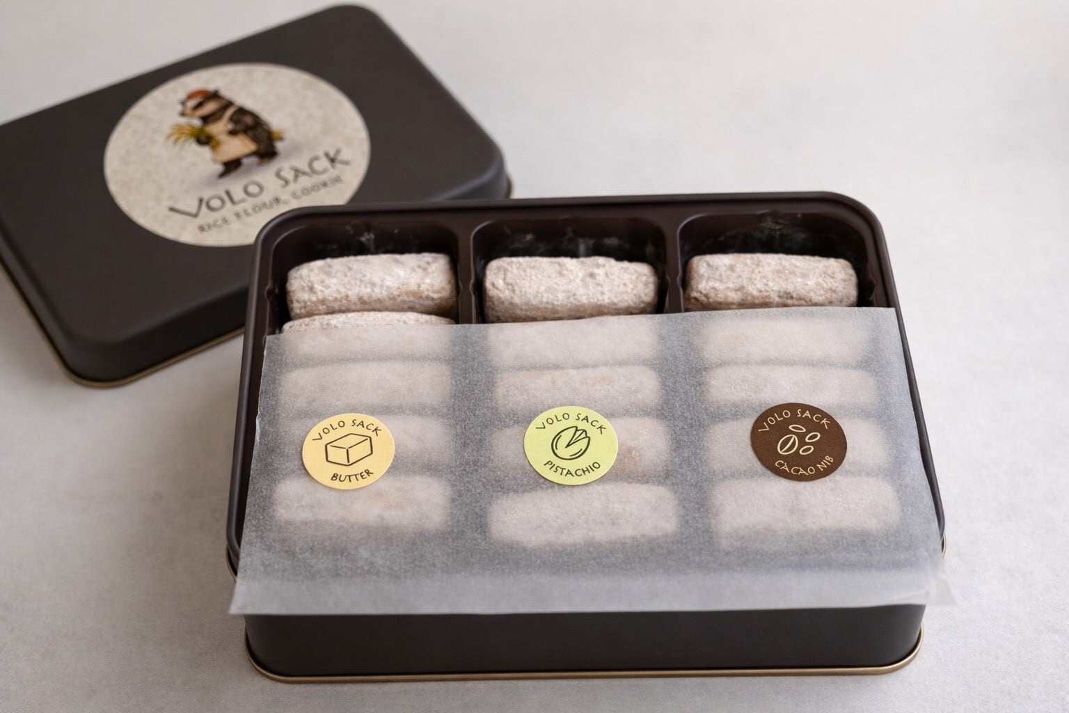 VOLO SACKの定番3種類 ─ バター、ピスタチオ、カカオニブを、
